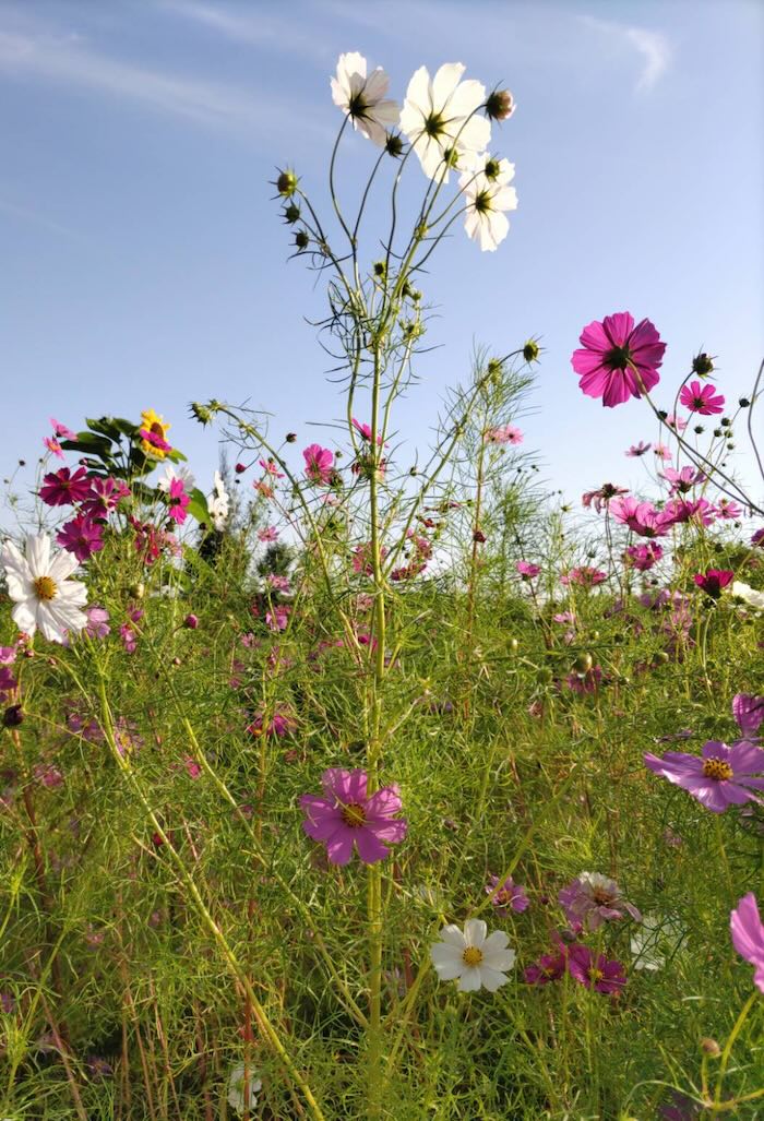 9月に入っても蒸し暑い日が続いていますが、朝晩は涼風が吹くようになりました。野辺のコスモスが優しくゆれ、散策が楽しい季節です。